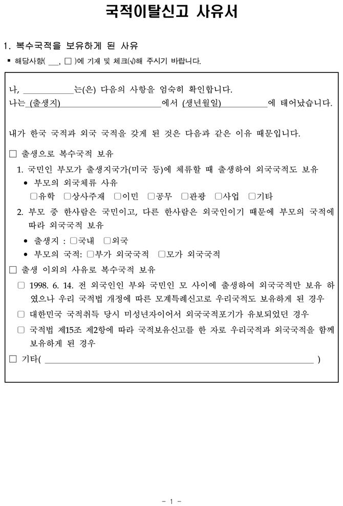 아래의 링크를 누르시면 주 로스앤젤러스 총영사관의 전자민원 서류양식 - 국적관련 양식 사이트가 나옵니다.